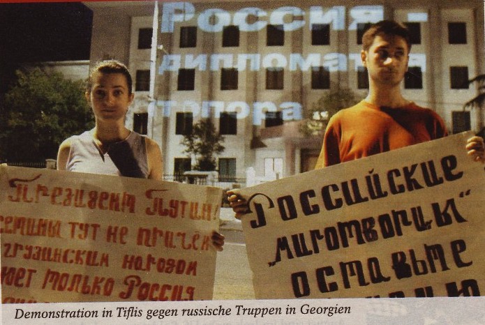"Georgian" Cyrillic A sample of a Russian text written by natives of Georgia. Certain Cyrillic letters have a distinct non-Cyrillic flavor to it, see the lowercase "r" in the word "Prezident". Remarkable is also the 'three-legged t" in the same word. In general, the posters show lowercase letters used as if they were capital letters.