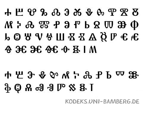 Bulgarische oder Runde Glagolica - Glagolitische Schrift - Glagolitisches Alphabet